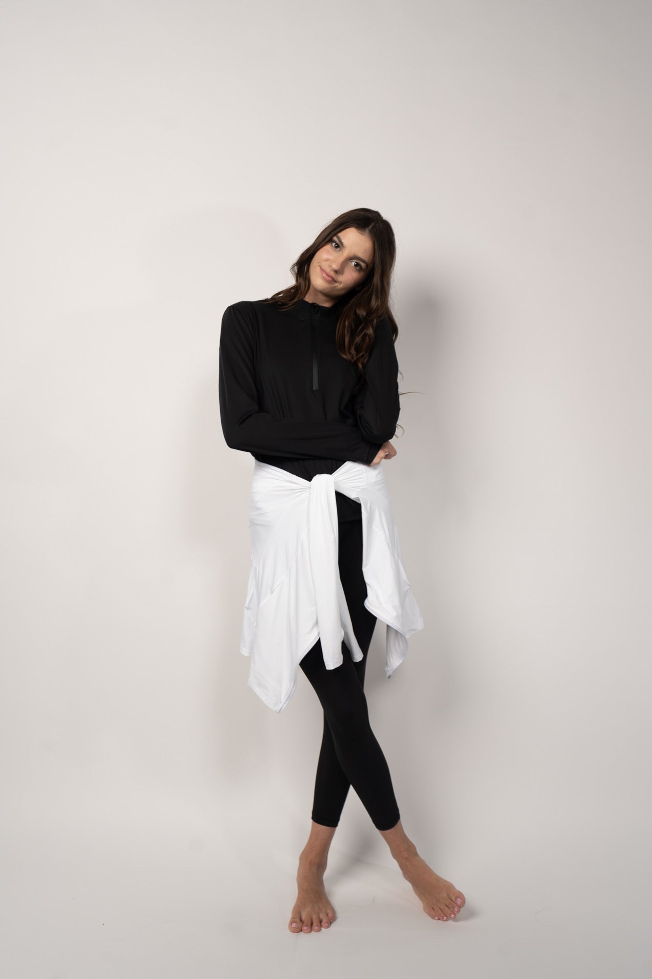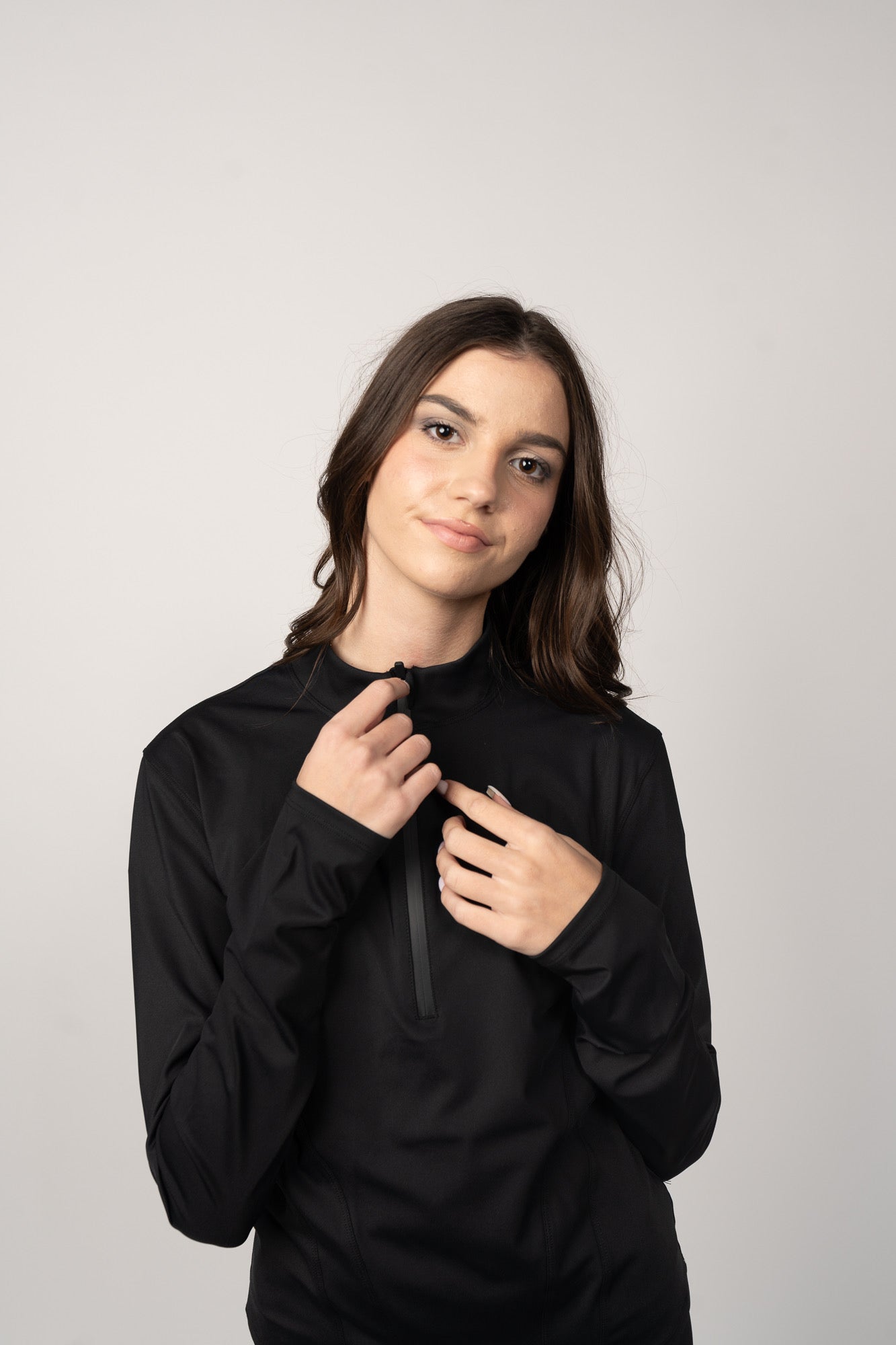 Our High neck top is made from comfortable, soft-to-touch fabric for superior comfort. Its light weight design and sweat absorbent properties make it perfect for any activity. The added thumbholes provide additional comfort, making it ideal for hijabi ladies. Crafted with high quality material, our top is an ideal mix of functionality and style.